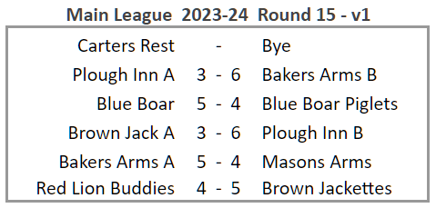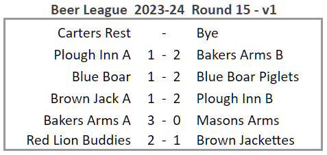 The week’s league results are shown below: